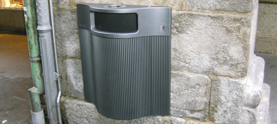Diseñamos y fabricamos papeleras galvanizadas y pintadas con pintura exposi en polvo de color para identificar los residuos a reciclar.